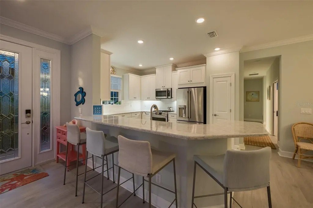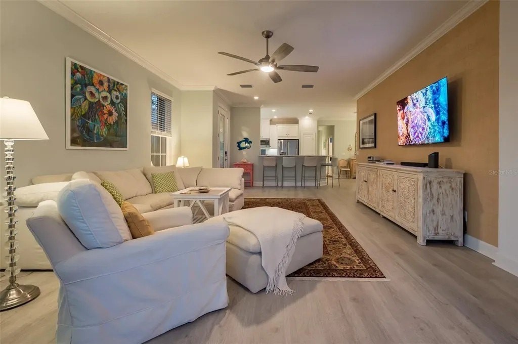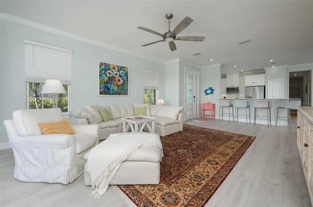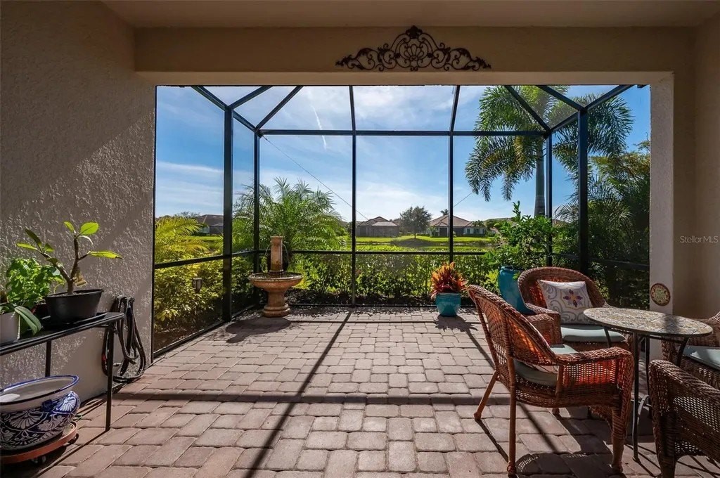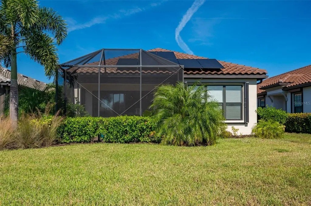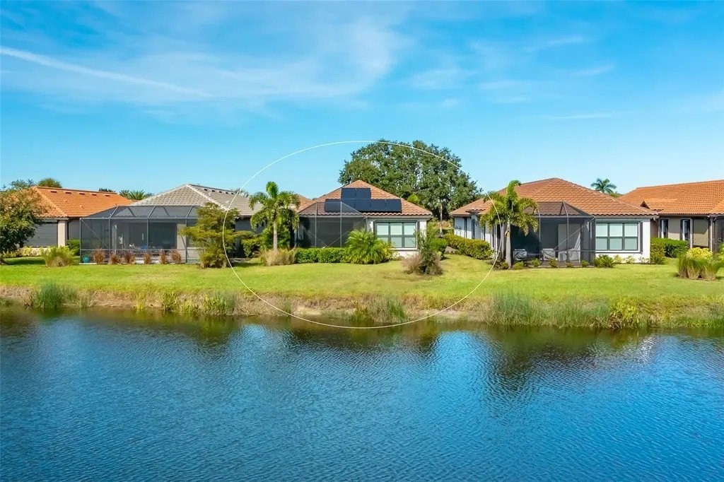 Experience waterfront living at its finest in this pristine Arezzo floor plan featuring 3 bedrooms, 2 baths, and a versatile den, all enhanced by an extended lanai showcasing breathtaking, unobstructed water views from a premium southern-exposure lot. Nestled within the gated Esplanade on Palmer Ranch community, this meticulously maintained home offers an efficient open floor plan with modern kitchen appointments including white maple cabinets, quartz countertops, and gas cooking, while solar panels with battery storage keep electric bills averaging just $27 monthly. The property features extensive custom landscaping, remote-controlled hurricane screens, whole house water filtration, and numerous premium upgrades throughout. Beyond the home itself, residents enjoy an exceptional resort-style lifestyle with state-of-the-art fitness center, wellness services, resort-style pool and spa, pickleball, tennis, bocce courts, dog parks, walking paths with private Legacy Bike Trail access, and the exclusive Bahama Bar offering restaurant and full-service bar-all within a vibrant community offering a full calendar of activities and social opportunities. This is more than a home-it's your gateway to the waterfront lifestyle you've been dreaming of. Remote Controlled Hurricane screens/ shutters, Solar power system with battery storage, some Furnishings transfer with house.
